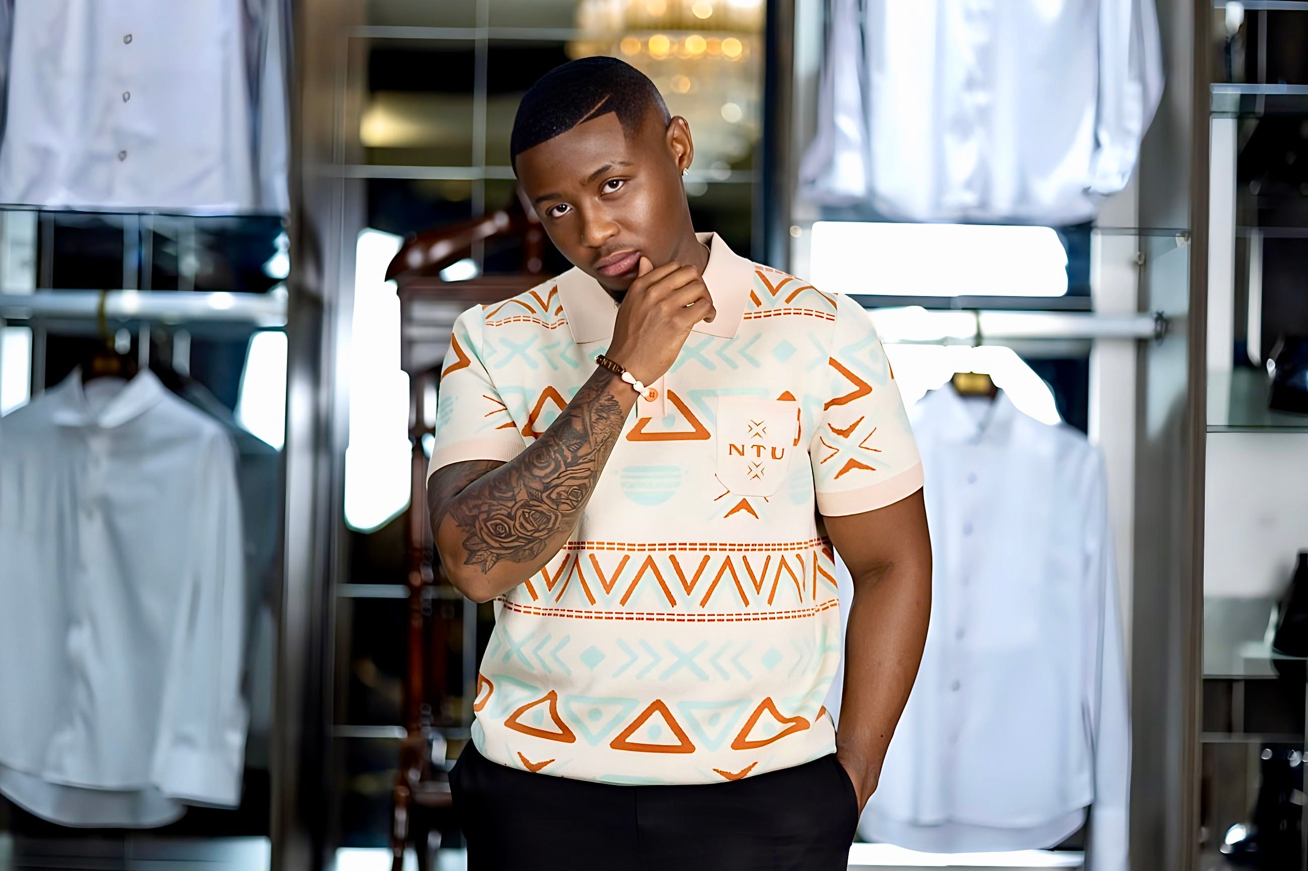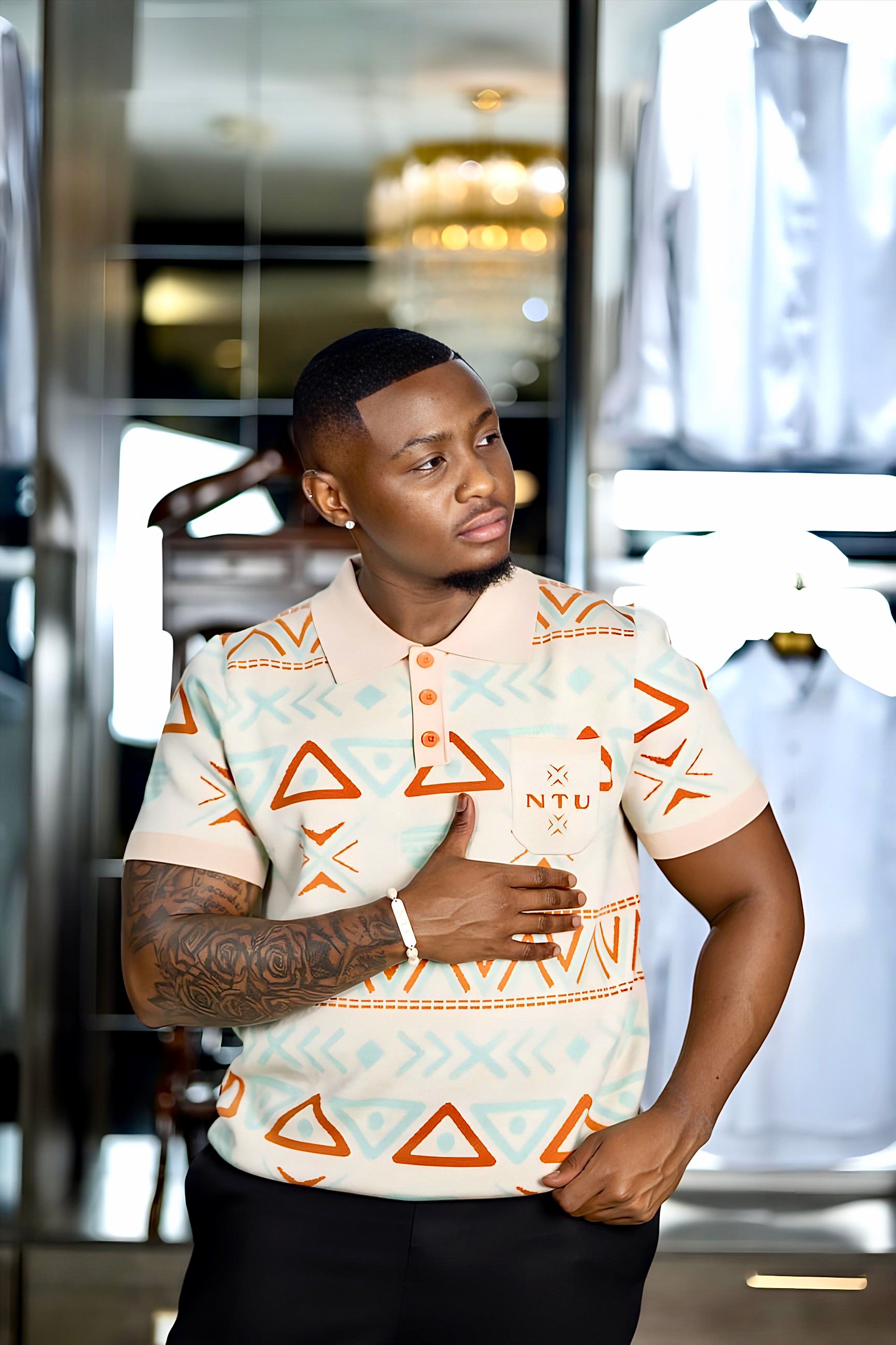 NTU Men’s Knitted Golf T-shirt (Offwhite Print)